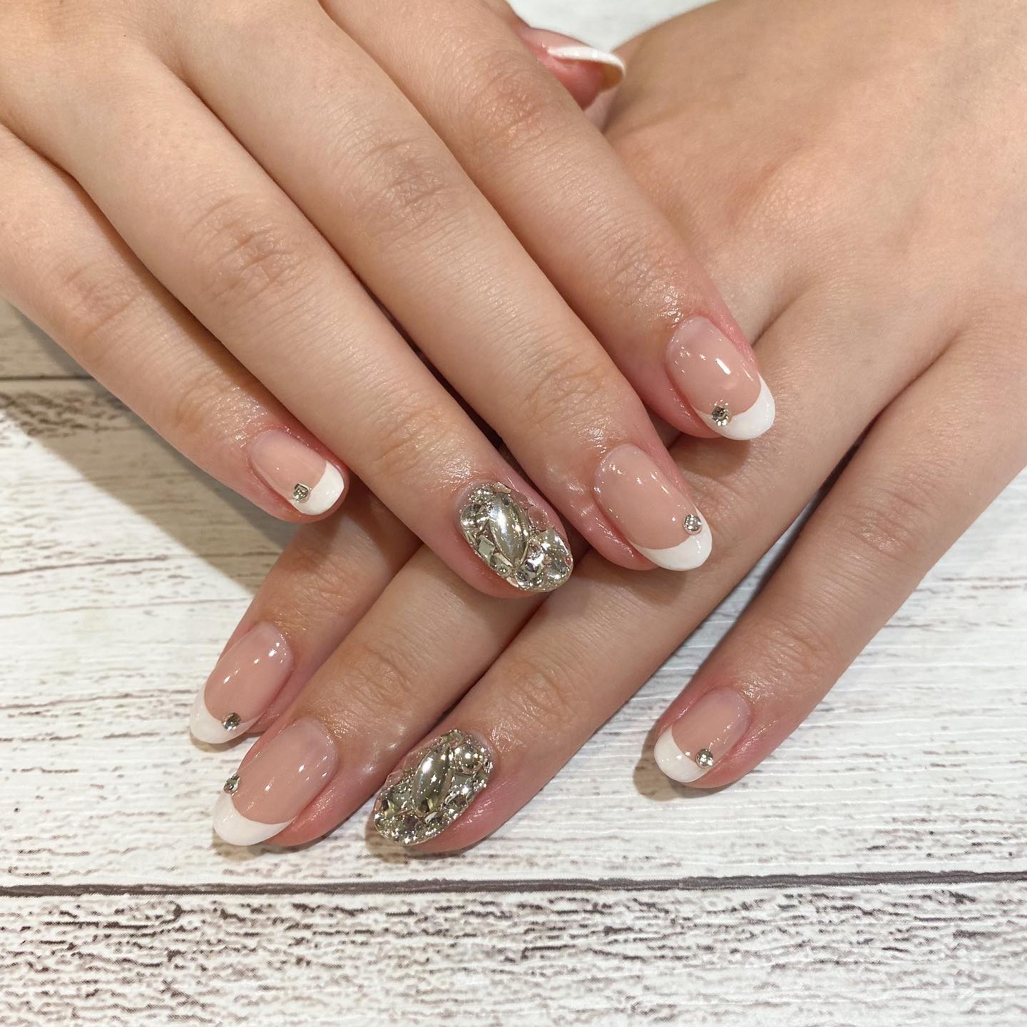 王道白フレンチにキラキラのストーン敷き詰め🤩✨